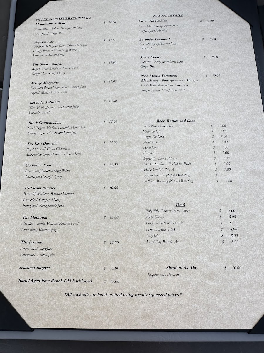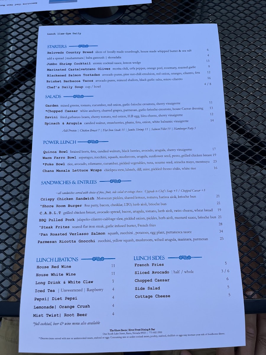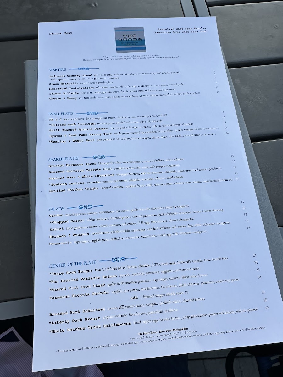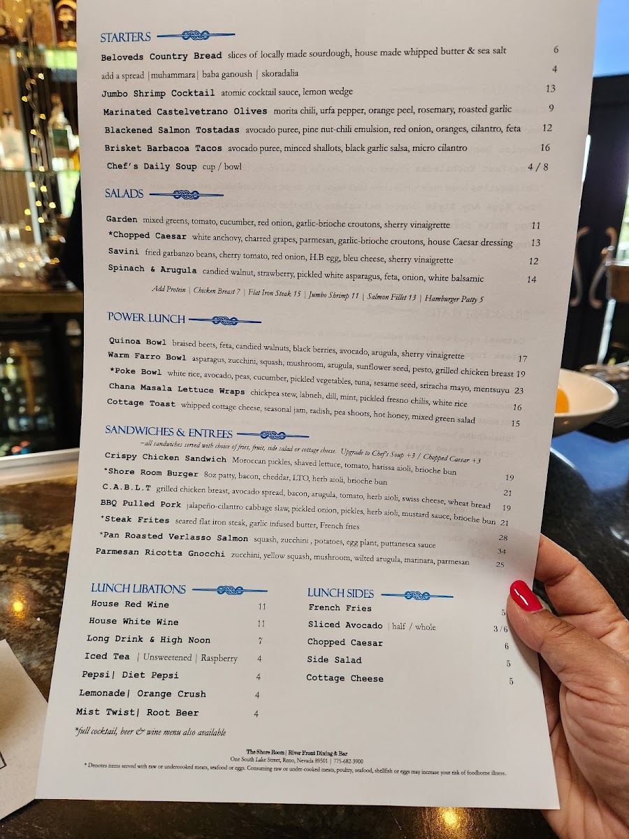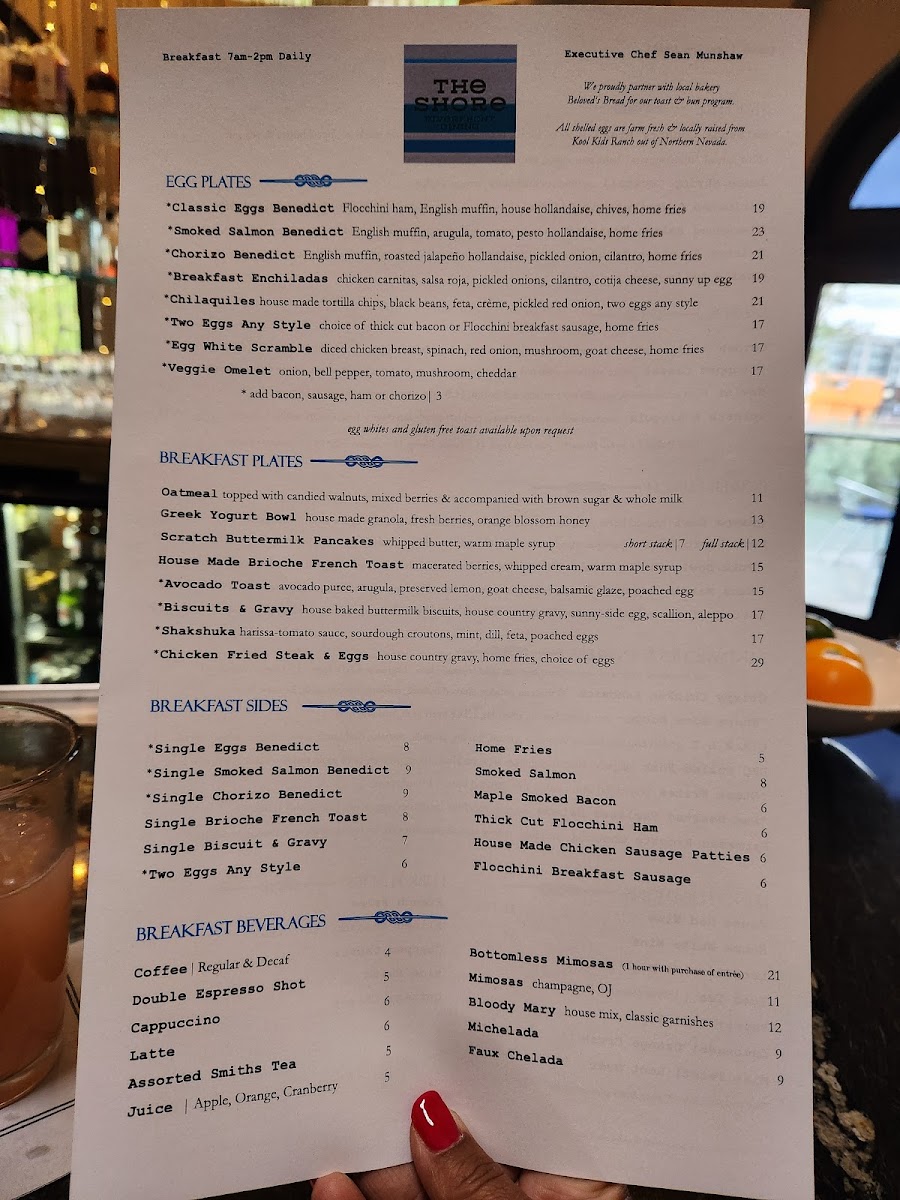 Welcome to The Shore, a culinary gem located on 1 S Lake St, Reno, NV. Renowned for its blend of fresh ingredients and inviting atmosphere, The Shore invites you to explore a menu that caters to all palates. Signature dishes like the Tsr Caesar Salad with grilled romaine and charred grapes, and the vibrant Greek Salad are ideal for a light yet fulfilling meal. For heartier options, don’t miss the savory smoked salmon eggs Benedict and the bold shakshuka—both praised by patrons for their rich flavors and perfect spice balance.